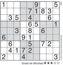 Complete el recuadro de tal manera que cada fila, columna y cuadro de 3x3 tengan los números del 1 al 9.