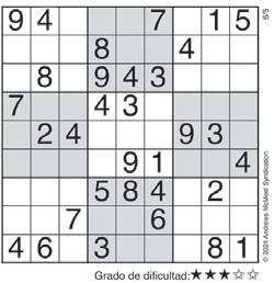 Complete el recuadro de tal manera que cada fila, columna y cuadro de 3x3 tengan los números del 1 al 9.