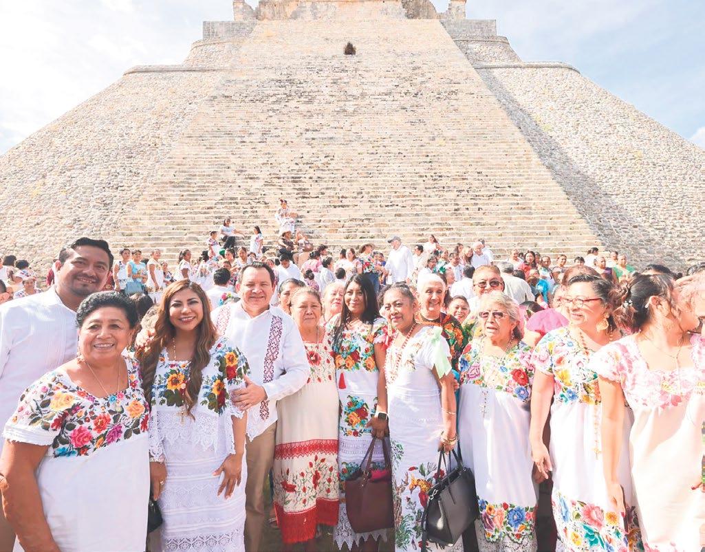TESORO. Teniendo como escenario la pirámide del Adivino, en Uxmal, se realizó el Encuentro de Bordadoras Mayas, en donde autoridades reconocieron la labor ancestral de 200 artesanas P. 5