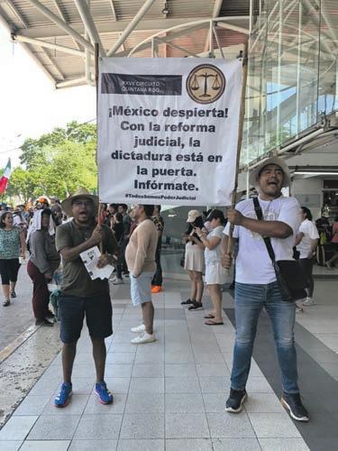 Trabajadores del PJ se manifestaron en el Aeropuerto Internacional de Mérida. Empresarios de Yucatán consideran que la reforma es un riesgo para la economía y la democracia P. 5