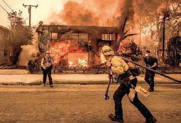 TRAGEDIA. Residentes realizan evacuaciones por las devastadoras conflagraciones avivadas por el viento.