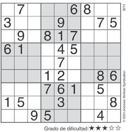 Complete el recuadro de tal manera que cada fila, columna y cuadro de 3x3 tengan los números del 1 al 9.