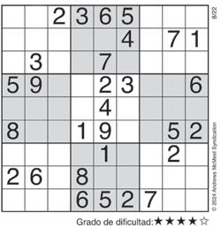 Complete el recuadro de tal manera que cada fila, columna y cuadro de 3x3 tengan los números del 1 al 9.
