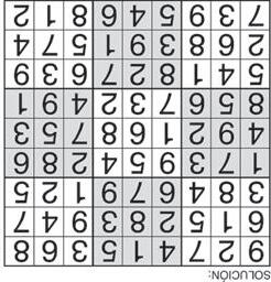 Complete el recuadro de tal manera que cada fila, columna y cuadro de 3x3 tengan los números del 1 al 9.