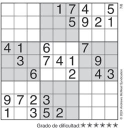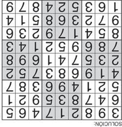 Complete el recuadro de tal manera que cada fila, columna y cuadro de 3x3 tengan los números del 1 al 9.