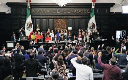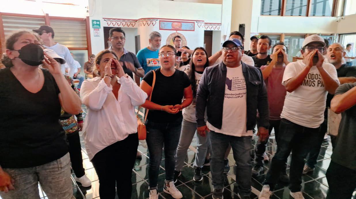 Tras un zafarrancho de trabajadores locales del Poder Judicial de la Federación, los diputados aprobaron, con 19 votos a favor y 16 en contra del PAN, PRI y MC, la reforma que promueve la elección de jueces y magistrados por la vía del voto popular. Los manifestantes se retiraron del recinto al darse cuenta de que Morena, el PT y el PVEM tenían los votos suficientes P.3