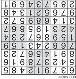 Complete el recuadro de tal manera que cada fila, columna y cuadro de 3x3 tengan los números del 1 al 9.