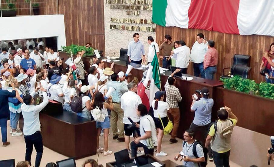 La polémica por la reforma al Poder Judicial se extendió del Senado a los congresos de los estados. En el caso de Yucatán, grupos de inconformes irrumpieron en la sesión matutina para demandar a los legisladores que no aprobaran el dictamen.