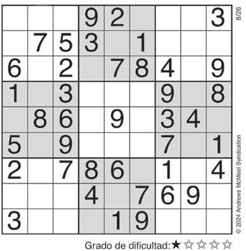 Complete el recuadro de tal manera que cada fila, columna y cuadro de 3x3 tengan los números del 1 al 9.