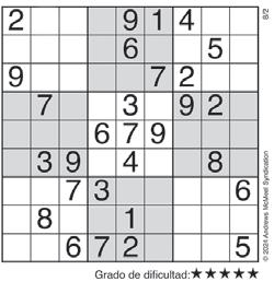 Complete el recuadro de tal manera que cada fila, columna y cuadro de 3x3 tengan los números del 1 al 9.