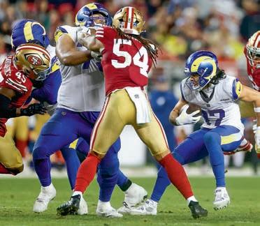 dirigidos por Sean McVay con opciones francas de alcanzar la postemporada. Colocados en la segunda posición de su división, con marca de 8-6, Rams dejaron prácticamente eliminados a los subcampeones de la NFL, ante un partido en el que los Niners apenas lograron 197 yardas en ataque, a diferencia de las 295 que tuvo el cuadro visitante. Igualados en victorias con Seattle, Rams tendrán la opción de pelear el título divisional con partidos restantes ante Jets, Cardenales y los Halcones Marinos. /24 HORAS