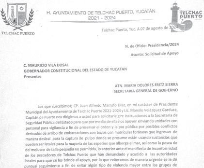 “Nos dirigimos a usted para solicitarle gire instrucciones a la Secretaría de Seguridad Pública del Estado para que nos apoyen enviando unidades con personal para vigilancia, a fin de preservar el orden y la paz pública por posibles conflictos derivados del arribo de embarcaciones con matrículas foráneas”, se lee en la publicación. La petición subraya la necesidad de un seguimiento puntual y urgente para prevenir cualquier escalada de violencia entre los pescadores locales y los foráneos.