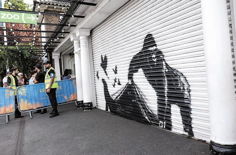 refugiados o el destino de los palestinos. Para el periódico dominical The Observer, el objetivo era levantar el ánimo del público en un período en el que las noticias son sombrías. Varias obras de Banksy se vendieron en subastas por millones de dólares. El jueves, unos hombres enmascarados fueron filmados apoderándose de una antena parabólica en la que el artista acababa de pintar un lobo aullando. Unos obreros desmontaron el sábado entre abucheos el panel con el gato, explicando que fueron enviados debido al gran tráfico