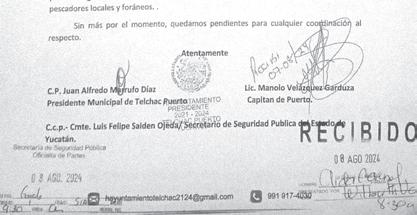 Nos dirigimos a usted para solicitarle gire instrucciones a la Secretaría de Seguridad Pública del Estado para que nos apoyen enviando unidades con personal para vigilancia, a fin de preservar el orden y la paz pública por posibles conflictos derivados del arribo de embarcaciones con matrículas foráneas.