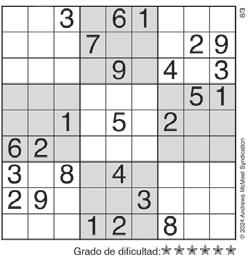Complete el recuadro de tal manera que cada fila, columna y cuadro de 3x3 tengan los números del 1 al 9.