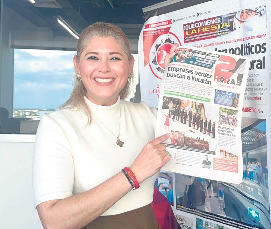 EDUCACIÓN. Verónica Camino Farjat, quien estuvo en la redacción de 24 HORAS Yucatán, también habló de su trabajo en la Unidad del Sistema para la Carrera de Maestro y Maestras.