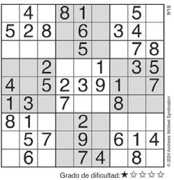 Complete el recuadro de tal manera que cada fila, columna y cuadro de 3x3 tengan los números del 1 al 9.