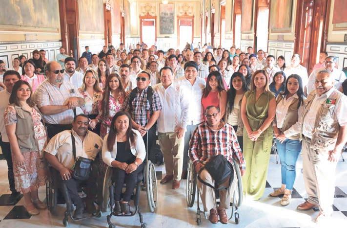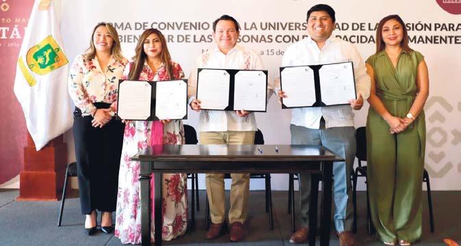 El gobernador Joaquín Díaz y el delegado estatal de Programas para el Desarrollo, Rogerio Castro, firmaron el Convenio para la Universalidad de la Pensión del Bienestar de las Personas con Discapacidad. P. 5