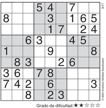 Complete el recuadro de tal manera que cada fila, columna y cuadro de 3x3 tengan los números del 1 al 9.