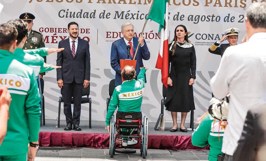 El presidente Andrés Manuel López Obrador encabezó la ceremonía para despedir a la comitiva deportiva que participará en los Juegos Paralímpicos de París 2024, del 28 de agosto al 8 de septiembre DTX.16