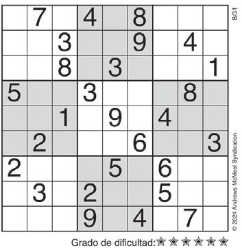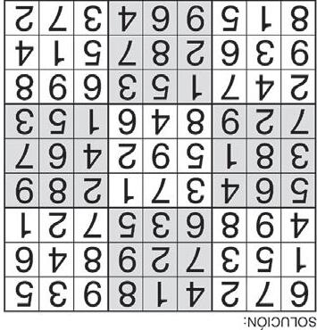 Complete el recuadro de tal manera que cada fila, columna y cuadro de 3x3 tengan los números del 1 al 9.