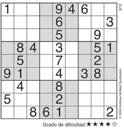 Complete el recuadro de tal manera que cada fila, columna y cuadro de 3x3 tengan los números del 1 al 9.