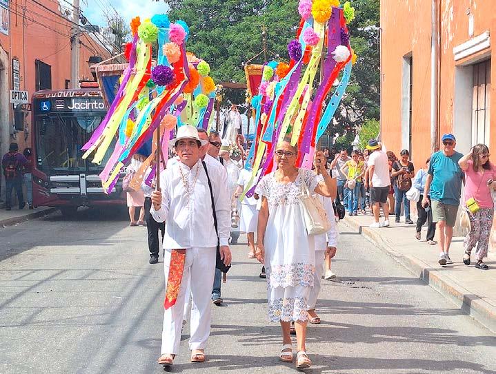 Al concluir la celebración eucarística una procesión recorrió las calles 67, 62, 69 y 64, rodeando la Iglesia de San Juan Bautista y su plazuela, antes de regresar al Templo de la Candelaria. La procesión fue encabezada por Monseñor Mena Díaz y el presbitero Raul Lugoque, seguido por un grupo de hombres y mujeres vestidos con la tradicional vestimenta yucateca: guayabera, pantalón blanco y alpargatas para los hombres, e hipil para las mujeres. Alrededor de 50 fieles acompañaron la imagen de la Candelaria durante el recorrido, mientras una charanga amenizaba la peregrinación con sus compases festivos. / GUILLERMO CASTILLO
