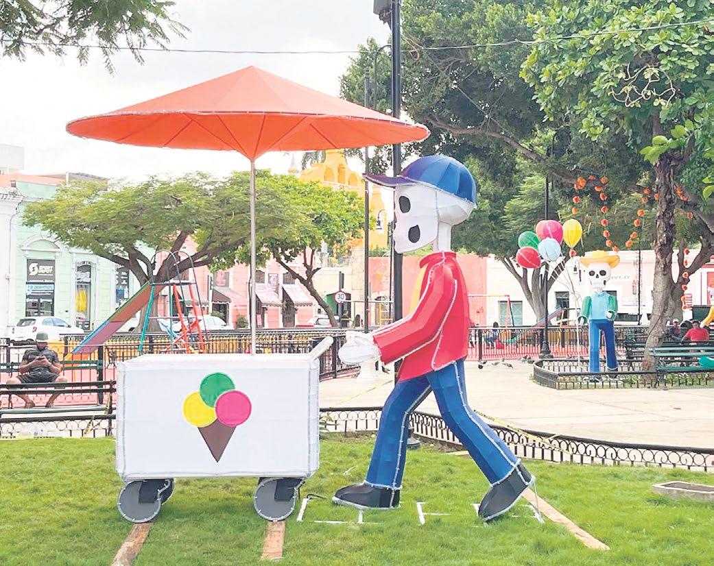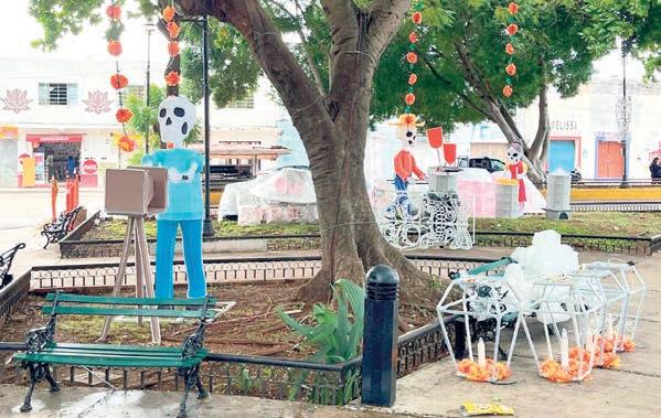 Durante un recorrido de 24 HORAS Yucatán por el lugar, se constató que las calaveras, algunas de éstas realmente gigantes, fueron instaladas en las jardineras del parque, y que simulan realizar trabajos u oficios muy reconocidos en el día a día de los yucatecos como el vendedor de pan, de helados, el barrendero, no podría falta la calavera montada en su bicicleta y haciendo trabajos de carpintería, entre otros.