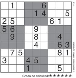 Complete el recuadro de tal manera que cada fila, columna y cuadro de 3x3 tengan los números del 1 al 9.