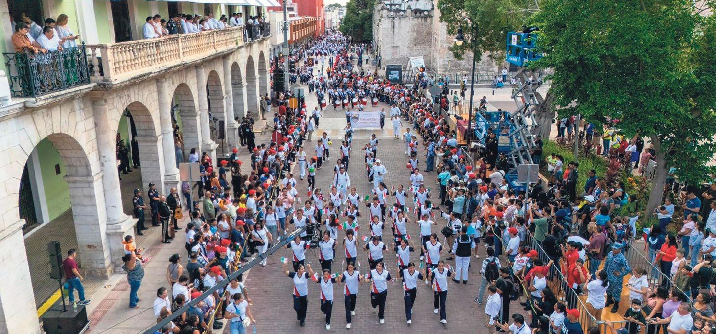 En el corazón de la ciudad ondearon banderas tricolores, mientras más de 20 mil personas se congregaron para disfrutar de un espectáculo que reflejó la gallardía y unión de la sociedad yucateca.