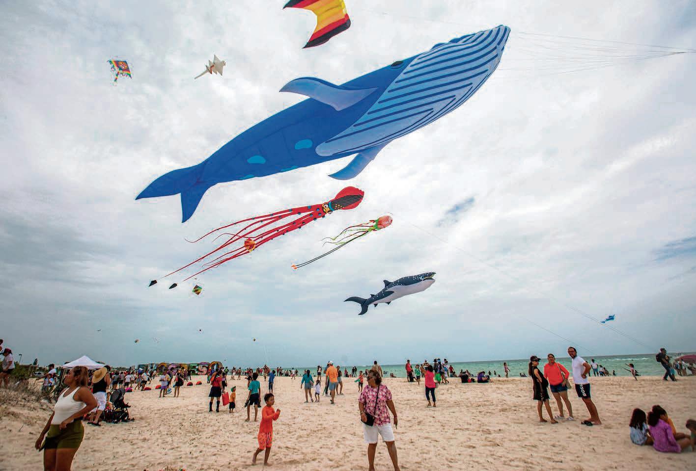 la playa de Progreso para disfrutar del Festival del Papagayo en su segunda edición, donde se vieron animales marinos volando.