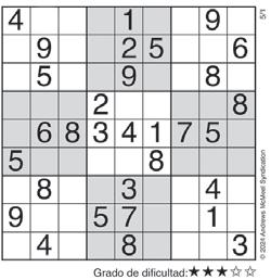 Complete el recuadro de tal manera que cada fila, columna y cuadro de 3x3 tengan los números del 1 al 9.