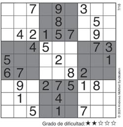 Complete el recuadro de tal manera que cada fila, columna y cuadro de 3x3 tengan los números del 1 al 9.
