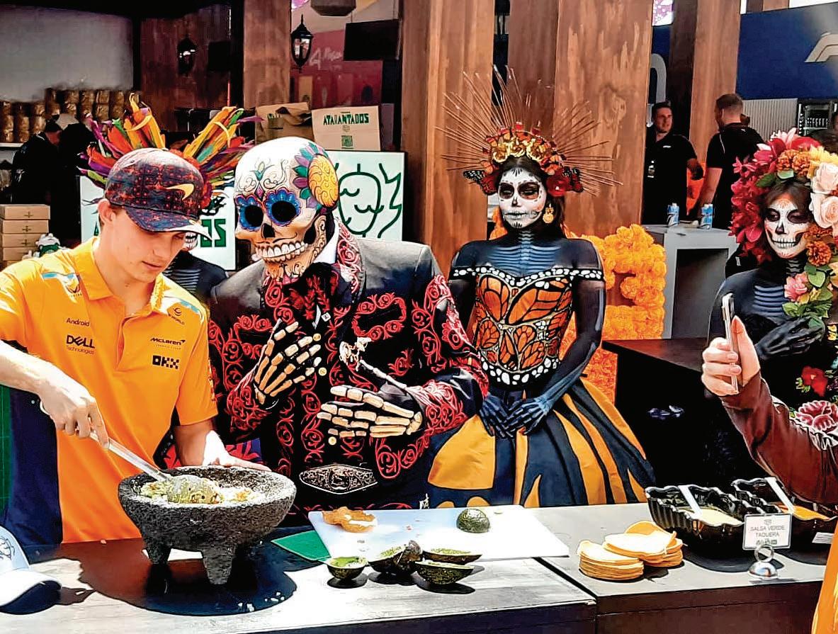 Durante el llamado Día de Medios, los pilotos se dieron tiempo para realizar juegos, tomarse fotografías, jugar y hasta cocinar algunos platillos. 1. El australiano Oscar Piastri, de la Escudería McLaren, preparó un poco de guacamole. 2. Charles Leclerc y Carlos Sainz de Ferrari estuvieron jugando un poco con un Jenga gigante. 3. Sergio Pérez también convivió con Liam Lawson de la escudería RV Visa Cash App (al fondo Max Verstappen y Yuki Tsunoda). 4. Charles Leclrerc aprovechó su visita para vestirse de Mariachi. 5. Lewis Hamilton estuvo paseando por la zona de paddocks y regalando algunos autógrafos. /DANIEL PAULINO