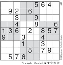 Complete el recuadro de tal manera que cada fila, columna y cuadro de 3x3 tengan los números del 1 al 9.