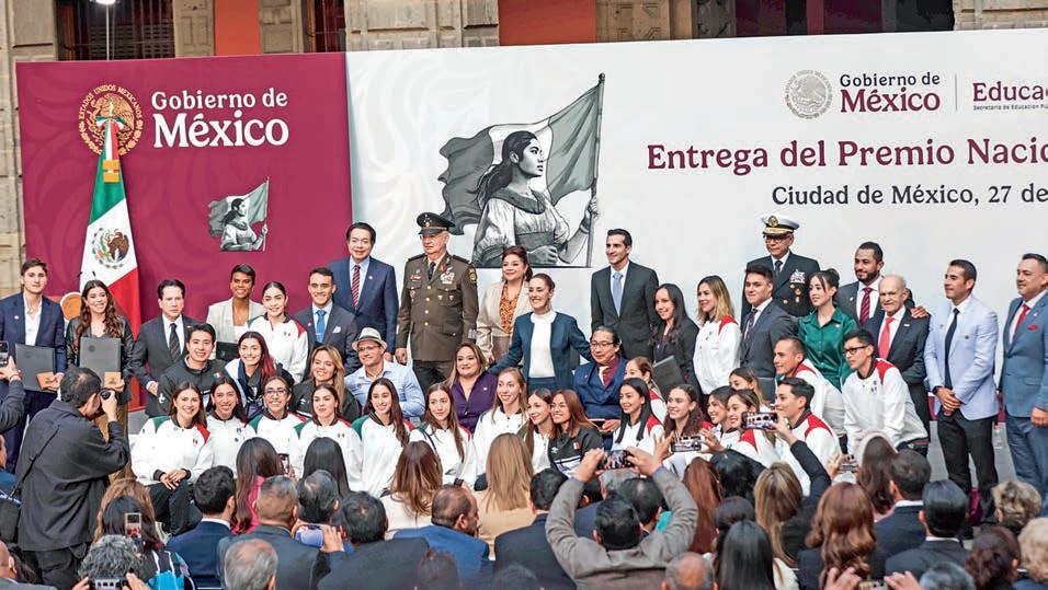 Durante la entrega del Premio Nacional de Deportes 2024 y primera edición bajo su gestión, la Presidenta Claudia Sheinbaum fue reconocida e invitada por los atletas de alto rendimiento del país como capitana del deporte rumbo a la cita olímpica de Los Ángeles 2028.