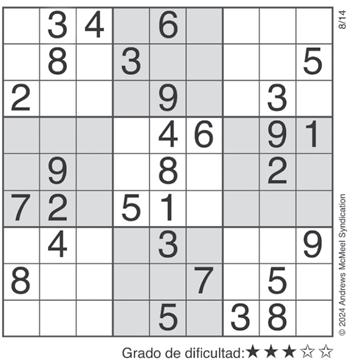 Complete el recuadro de tal manera que cada fila, columna y cuadro de 3x3 tengan los números del 1 al 9.