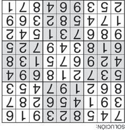 Complete el recuadro de tal manera que cada fila, columna y cuadro de 3x3 tengan los números del 1 al 9.