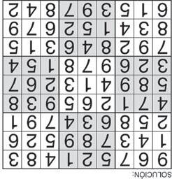 Complete el recuadro de tal manera que cada fila, columna y cuadro de 3x3 tengan los números del 1 al 9.