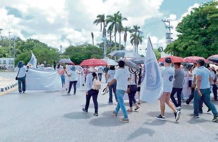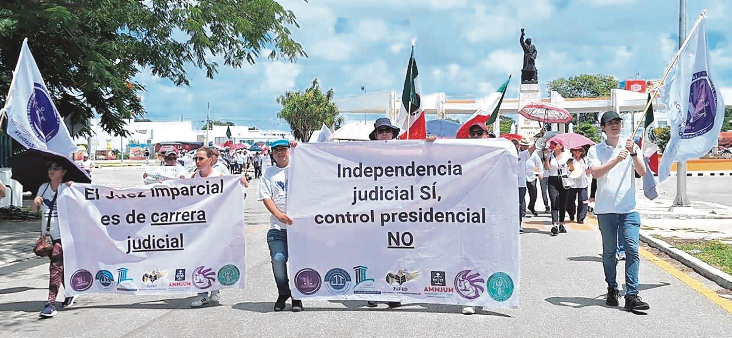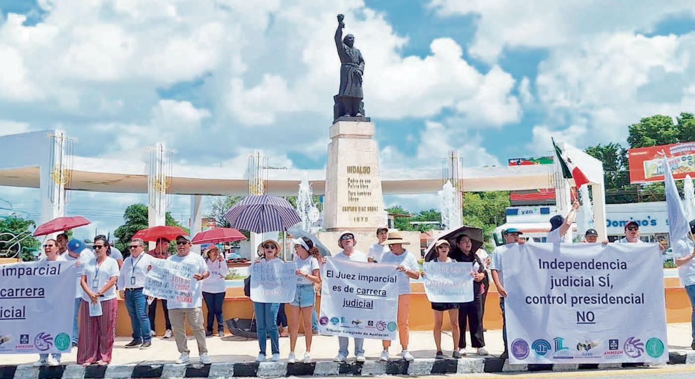 MOVILIZACIÓN. Ante el avance de la Cámara de Diputados a la Reforma al Poder Judicial, trabajadores de este orden de gobierno en la entidad regresaron a las calles para marchar hacia el monumento a Miguel Hidalgo, donde hicieron un breve plantón, continuaron por la avenida Itzáes y retornaron a su sede P.5