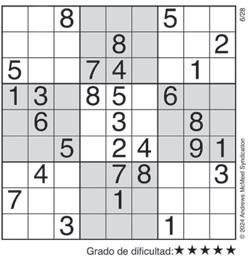 Complete el recuadro de tal manera que cada fila, columna y cuadro de 3x3 tengan los números del 1 al 9.