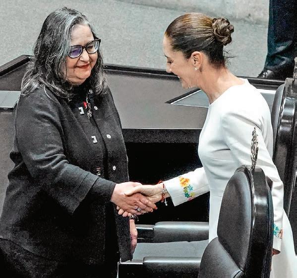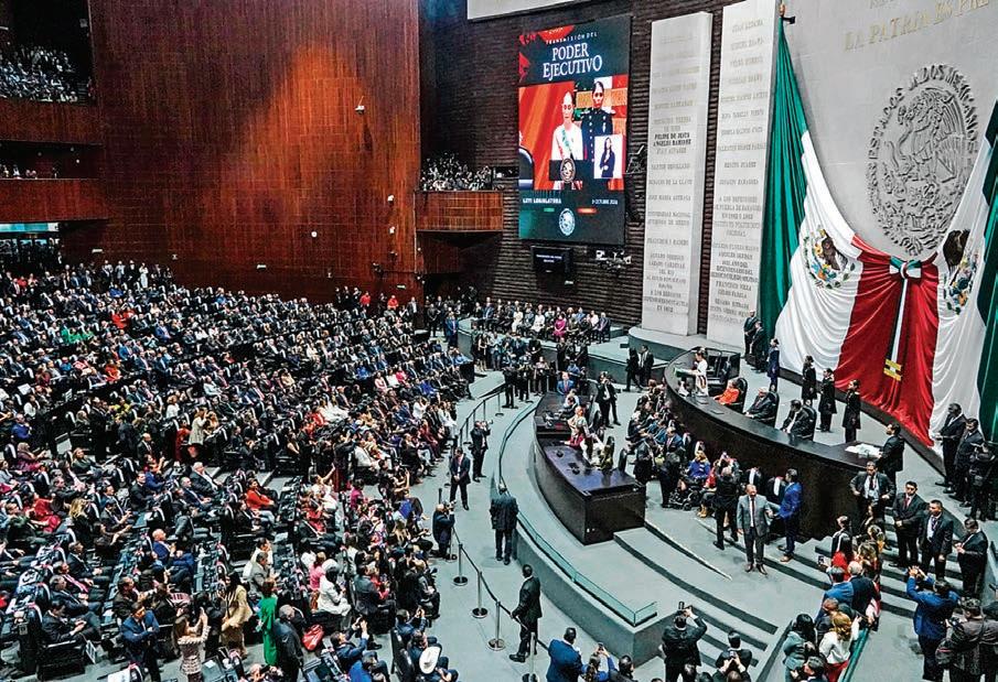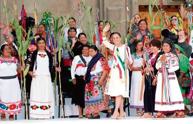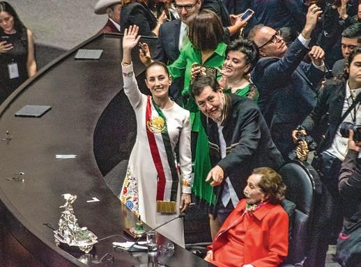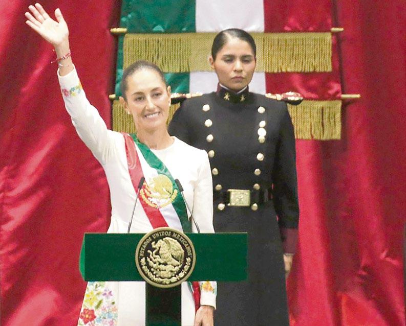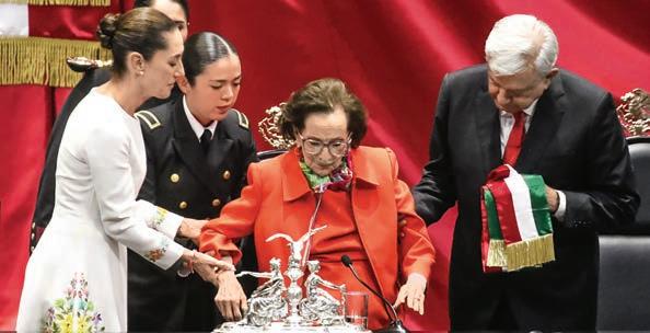 La primera presidenta de México, Claudia Sheinbaum, destacó en su mensaje a la Nación el papel de la mujer. Ifigenia Martínez le entregó la banda presidencial en el Congreso. En el Zócalo recibió el bastón de mando, de manos de representantes de pueblos indígenas P. 8 Y 9