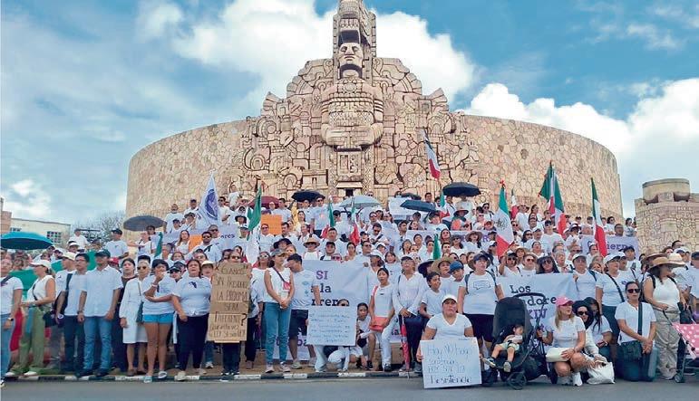 Los funcionarios del Poder Judicial de la Federación marcharon del Remate de Paseo de Montejo hacia el Monumento a la Patria, donde realizaron un plantón para reiterar que continuarán con el paro de labores, pues señalan que el proceso para concretar la Reforma estuvo lleno de irregularidades, debido a la mayoría de Morena en las cámaras P. 6