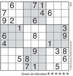 Complete el recuadro de tal manera que cada fila, columna y cuadro de 3x3 tengan los números del 1 al 9.
