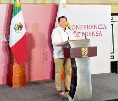 En su primera conferencia de prensa, el gobernador Joaquín Díaz Mena destacó que consolidará al municipio como punto primordial para exportaciones e importaciones de la zona, a través del Tren Maya de carga, la ampliación del muelle de Altura y el segundo Periférico de Mérida. Momentos antes encabezó su primer izamiento a la bandera P. 4