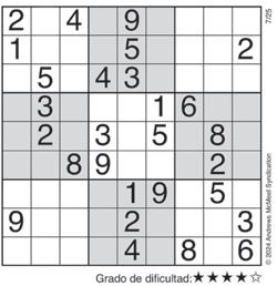 Complete el recuadro de tal manera que cada fila, columna y cuadro de 3x3 tengan los números del 1 al 9.