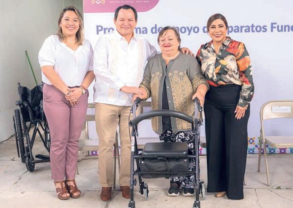 cas federales por estar en Mérida. Díaz Mena asistió a las oficinas centrales del Sistema para el Desarrollo Integral de la Familia (DIF) Yucatán para hacer entrega de 48 aparatos de movilidad a personas con discapacidad.