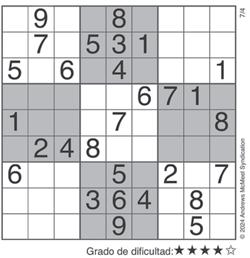 Complete el recuadro de tal manera que cada fila, columna y cuadro de 3x3 tengan los números del 1 al 9.