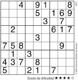 Complete el recuadro de tal manera que cada fila, columna y cuadro de 3x3 tengan los números del 1 al 9.