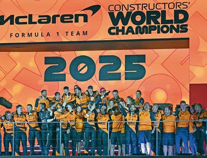 Con 650 puntos sumados y con 27 de los 13 que necesitaban en Marina Bay, McLaren celebró su décimo título de escudería (segundo al hilo), tras hacerse matemáticamente del campeonato de constructores tras concluir el Gran Premio de Singapur 2025.